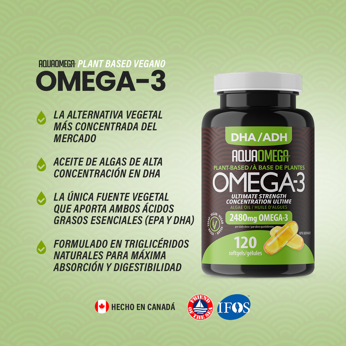 Aceite de algas de alta concentración en DHA, la única fuente vegetal que aporta ambos ácidos grasos esenciales (EPA y DHA). Formulado en triglicéridos naturales para máxima absorción y digestibilidad.