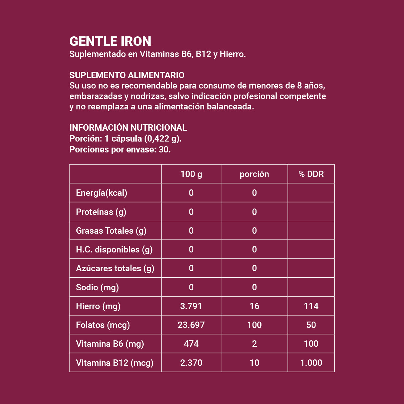 - Ácido fólico (como folato): 100 μg.