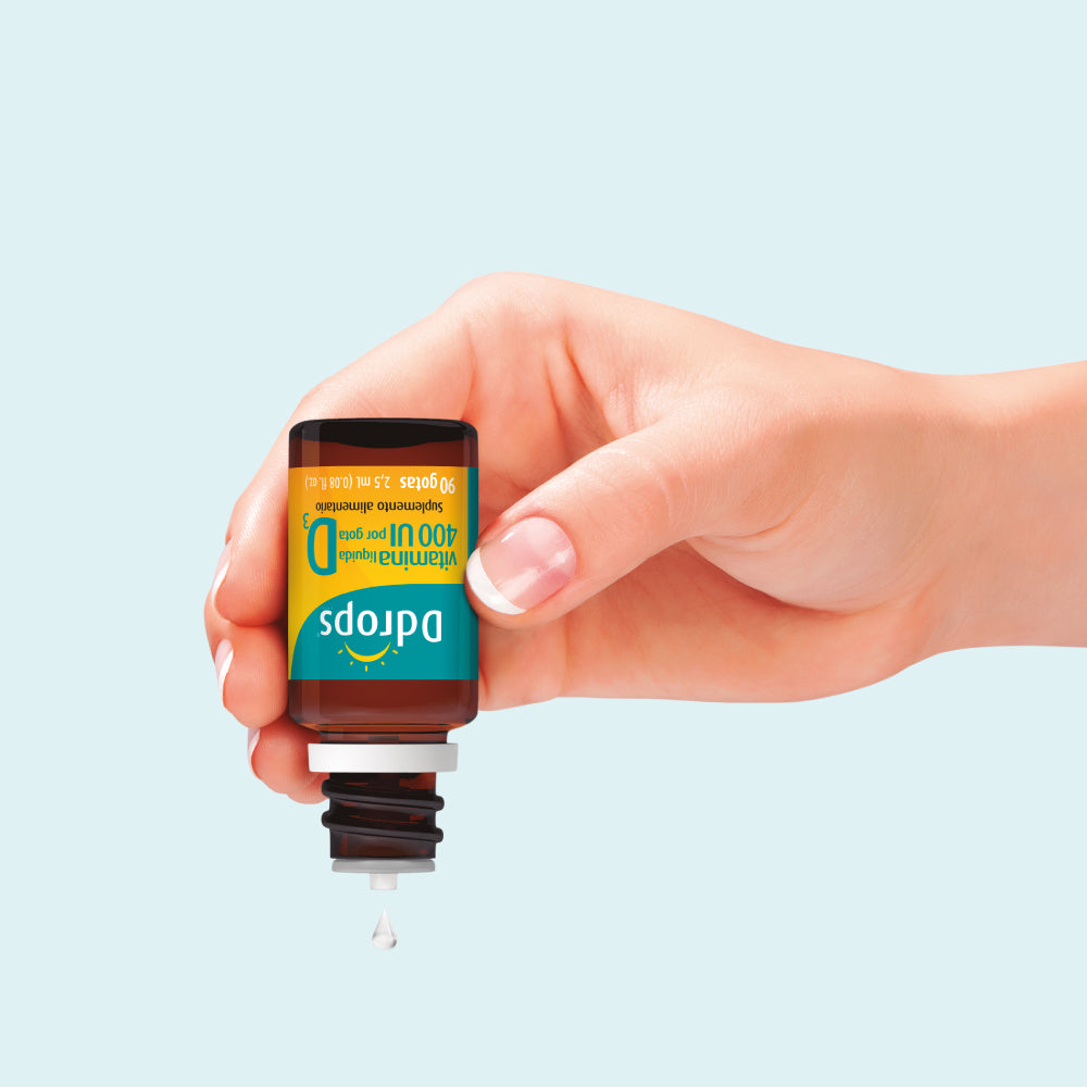 La dosis indicada de vitamina D líquida Ddrops es una gota al día, cantidad suficiente para cubrir el requerimiento diario recomendado de 400 UI.